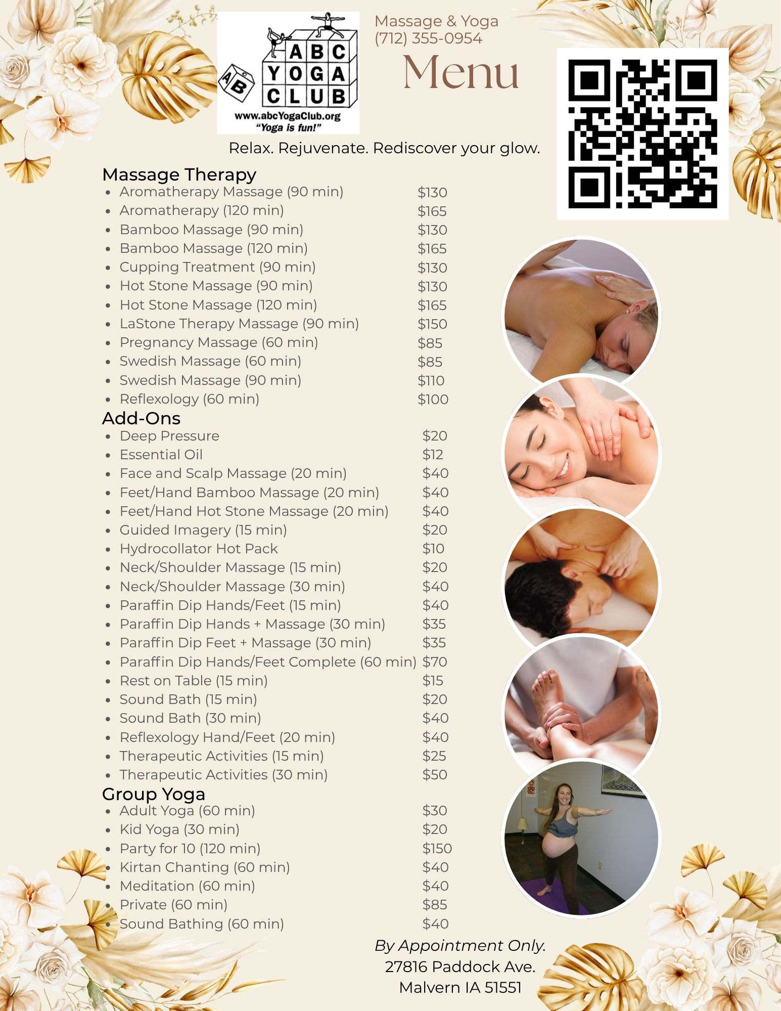 Click HERE for online scheduling.     Massages are by appointment only.